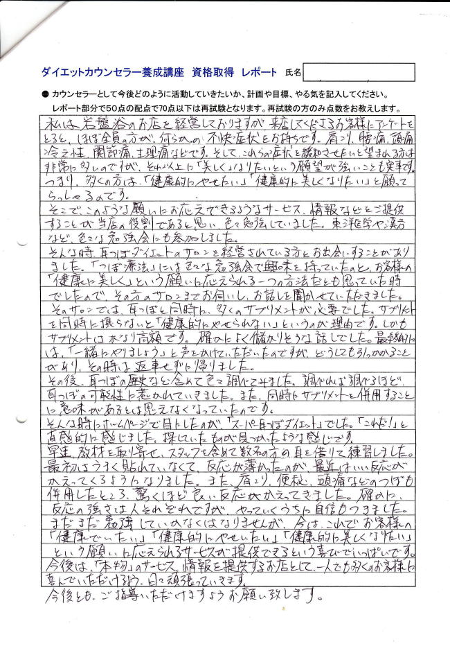 耳つぼダイエット カウンセラー申請レポート