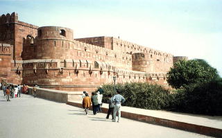 アグラ城 赤い砂岩でできいるので「レッドフォート」ともいう、1660年頃ジャーハーンという王が、息子に幽閉されたことで有名な城 |
