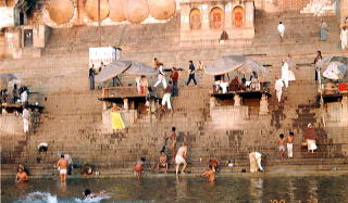 | ガンガー(ガンジス河) 早朝の沐浴 人数は少ない。 |