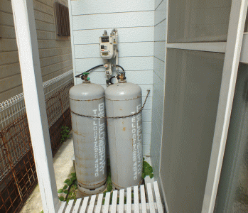キッリンから出た右にガスボンベ |
