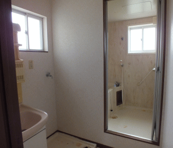 | バスルーム 窓側は畑で覗かれる心配がありません。 |
