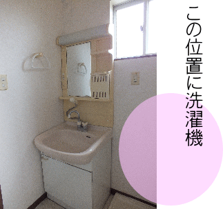 | 洗面所とバスルーム、左の黒は物置のドア |